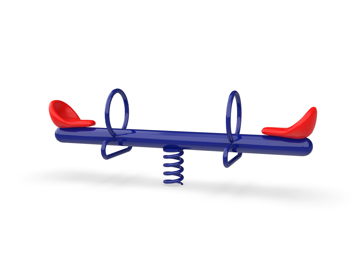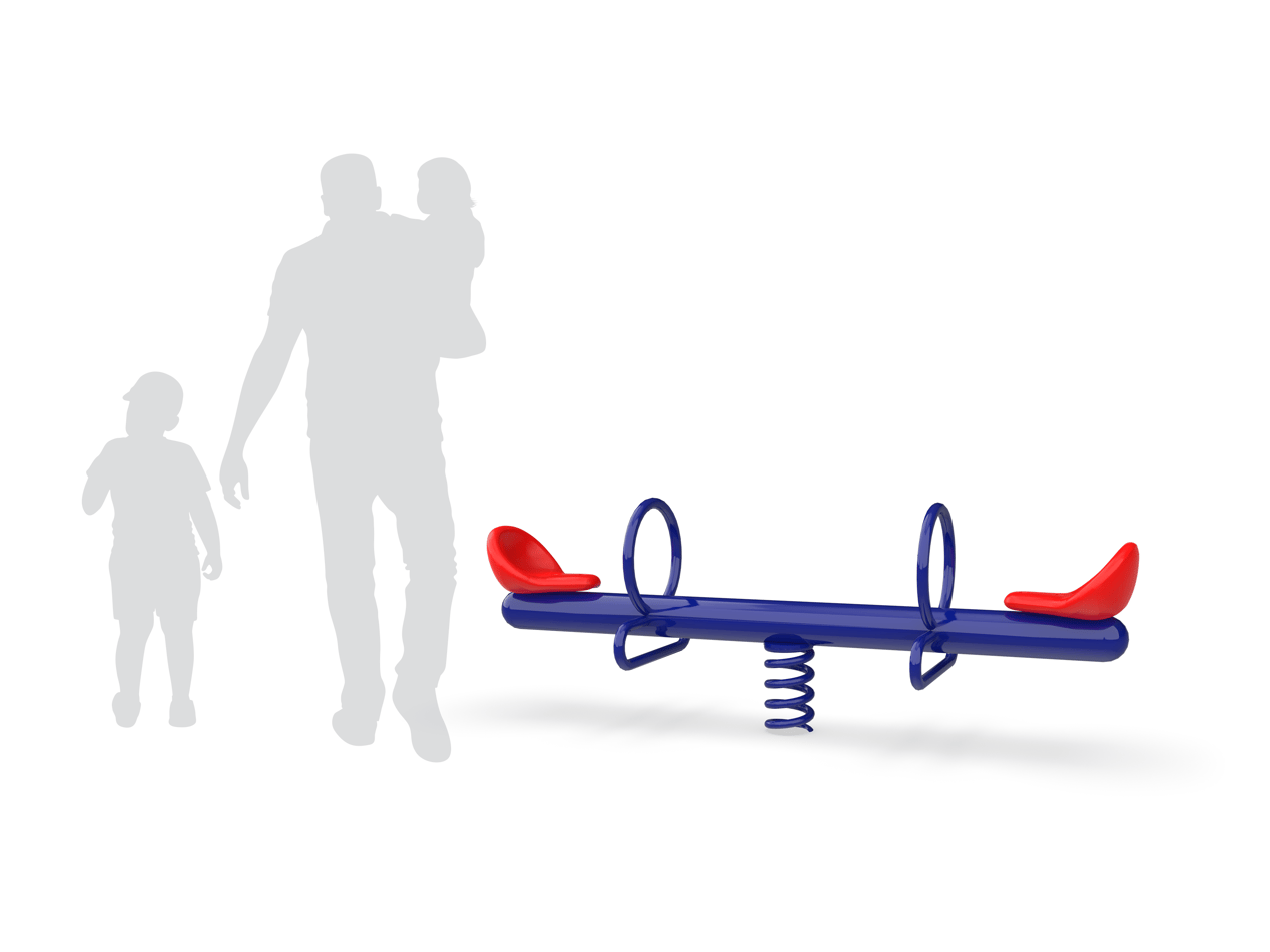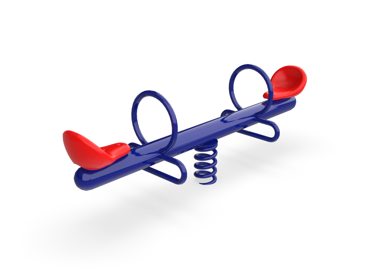 Encourage social interaction with the Two Rider Spring See Saw! Perfect for ages 2-5, the spring see saw is a welcome addition to any play space where younger users want to enjoy playing together. The 2 Rider Spring See Saw features a powdercoated blue frame with red seats. The Use Zone is 20 x 13 and requires the use of safety surfacing. Concrete anchor bolts are included or you can purchase the inground mounting kit, # 02-07-0187 (sold separately) Mounts with included concrete anchor bolts or Inground mounting kit also available # 02-07-0187 (sold separately)Specifications
