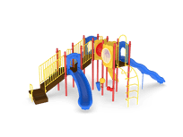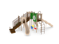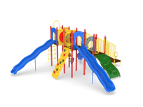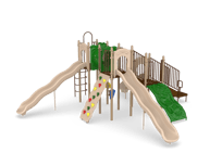 Three decks, three slides and three climbers for three-times the fun! Boulder Point features two 6 wave slides and a 4 curved slide in addition to a 6 Deluxe Rock Climbing Wall, 6 Rung climber and 4 Vine Climber. A crawl tunnel gives children a fun way to move from one deck to the other and ground-level music components add play value for children of all abilities.