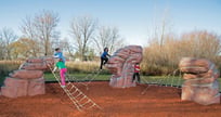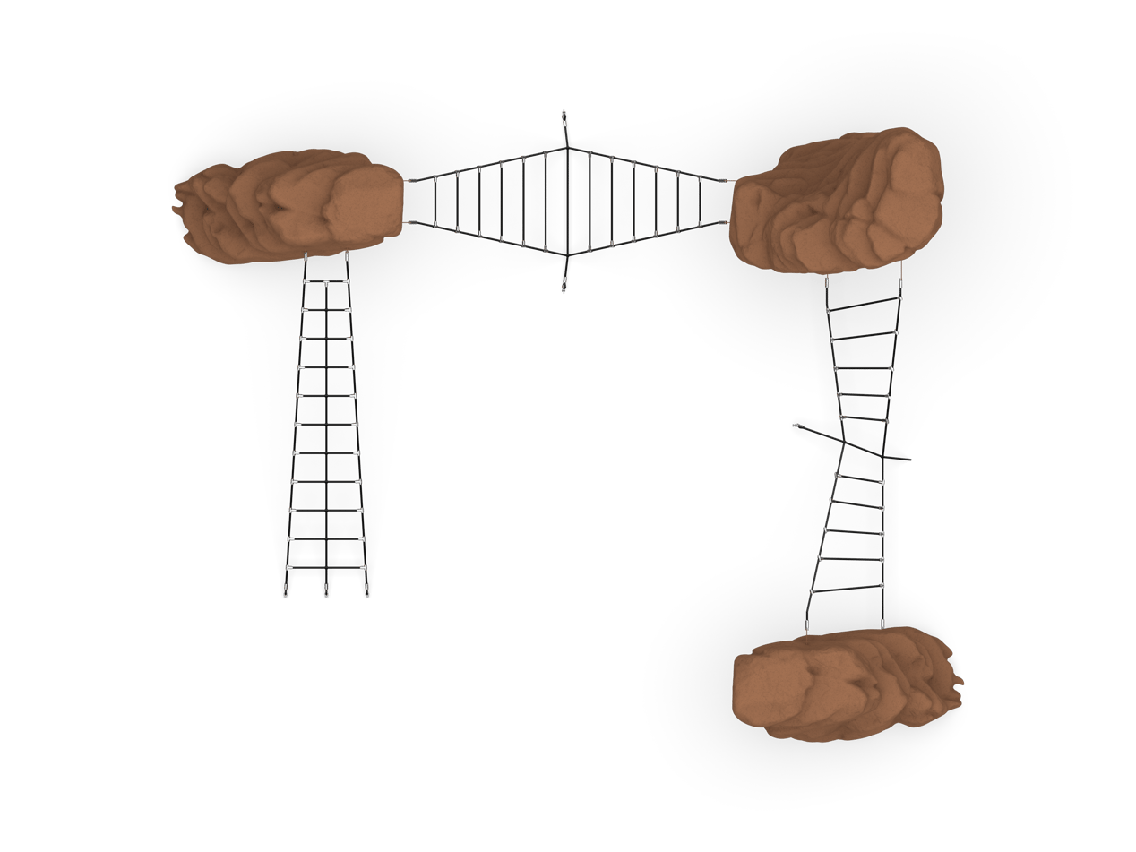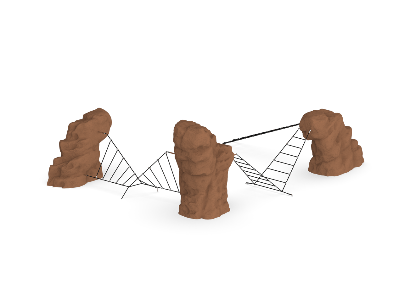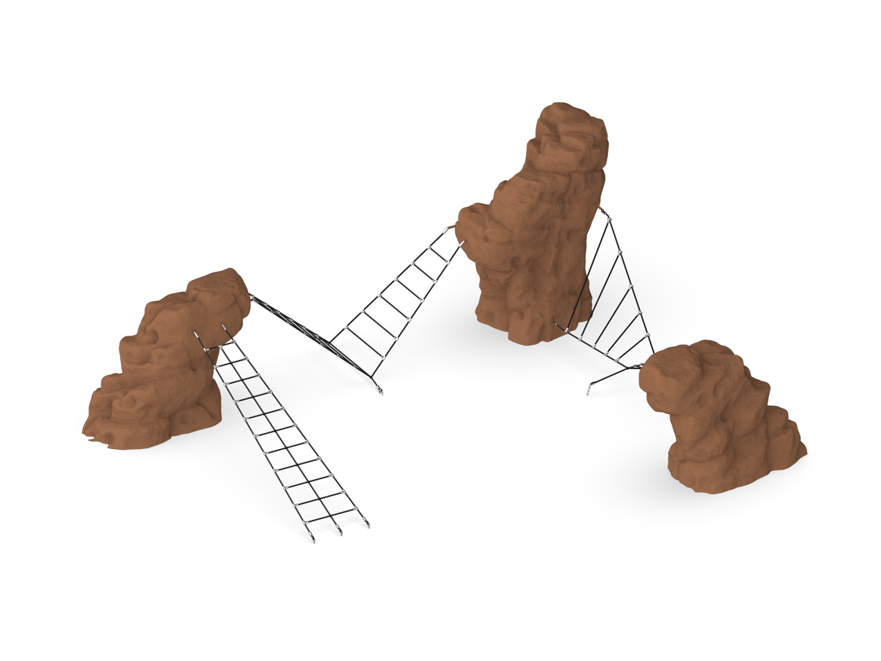 Add challenge and adventure to your play space with our nature inspired boulders linked by nets and ropes. The Cascade Range is our largest configuration, featuring two medium Sandstone Boulders, One Large Sandstone boulder, a Tapered Ladder Net, a Double Sloped Ladder Net and a Corkscrew Net. The Cascade Range can accommodate up to 18 children for maximum play value!