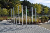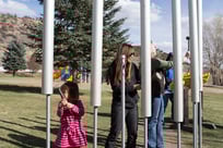 Stunning in both their towering appearance and low resonant sound, ranging in height from seven to nine feet, they can be installed in a variety of layouts including a horseshoe shape to experience a "surround sound" effect. Additional chimes may be purchased separately. The set comes with two mallet poles and four total mallets.