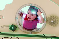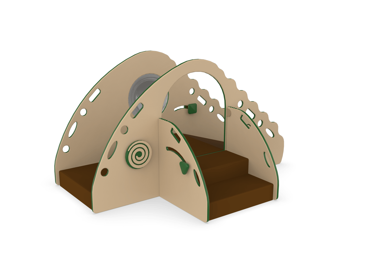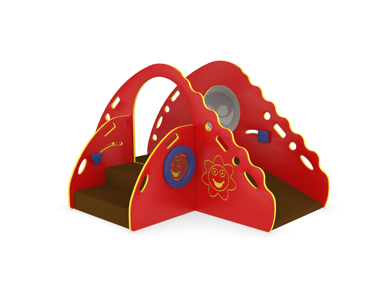 The Crawl & Toddle with Standard Platform combines creative and fun elements of development for children under two: Cruise Rail, Spinning Shapes and Gears, Bubble Panel, Visual Wheel, and three ways to climb including stairs and a ramp. Handholds are placed throughout to provide support for new walkers and cruisers. Available in Natural or Playful color palette.