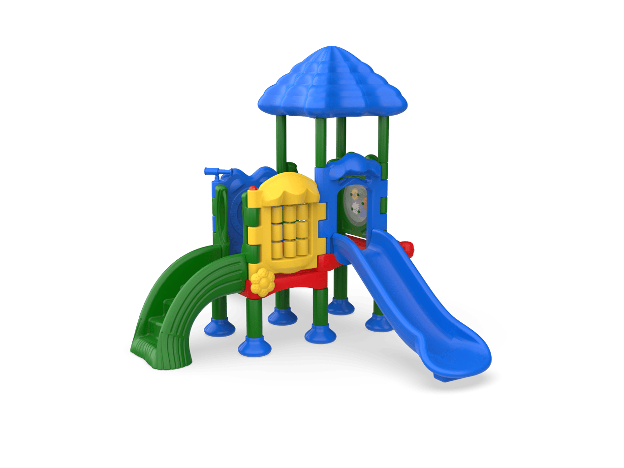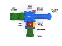The Discovery Ridge offers maximum play value packed into a compact design that can easily fit into your play space. The two-deck structure is designed with a variety of developmental and educational activities that encourage children to learn, grow, and lead healthy lifestyles. This structure provides music and movement opportunities as children play the rain wheel and bongo drums, encouraging self-expression. The roof also offers comfortable shade and visual appeal with the leafy canopy underside. From inside the structure, children can move the hands on the clock panel promoting fine motor development!