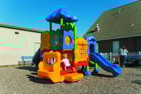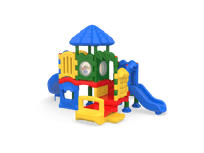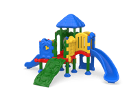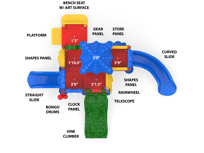 Children can interact with their friends on one of our largest play structures, which can accommodate up to 25 children. The Discovery Range (both playful and natural) features the longest slide in the Discovery Center product line for the most adventurous 2-5 year olds. While robust, this structure also allows for increased teacher interaction with the transparent barrier and window panels. This structure encourages outdoor multi-sensory learning as children play and interact with components designed to build key developmental skills such as fine and gross motor, science, dramatic play, music, and math! All Discovery Centers for 2-5 years exclusively feature free printed award-winning math curriculum for learning outdoors. Also, watch as children engage in dramatic play with the under-deck store panel!