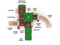 Children will love playing with their friends on one of our largest play structures, which can accommodate up to 25 children! This five-deck structure offers a variety of play activities as well as blending with the natural environment of your play space with our NEW natural color palette. The Discovery Range (both playful and natural) features the longest slide in the Discovery Center product line for the most adventurous 2-5 year olds. While robust, this structure also allows for increased teacher interaction with the transparent barrier and window panels. This structure encourages outdoor multi-sensory learning as children play and interact with components designed to build key developmental skills such as: fine and gross motor, science, dramatic play, music, and math! All Discovery Centers for 2-5 years exclusively feature a free printed award-winning math curriculum for learning outdoors!
