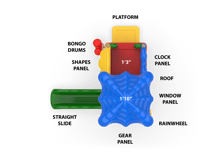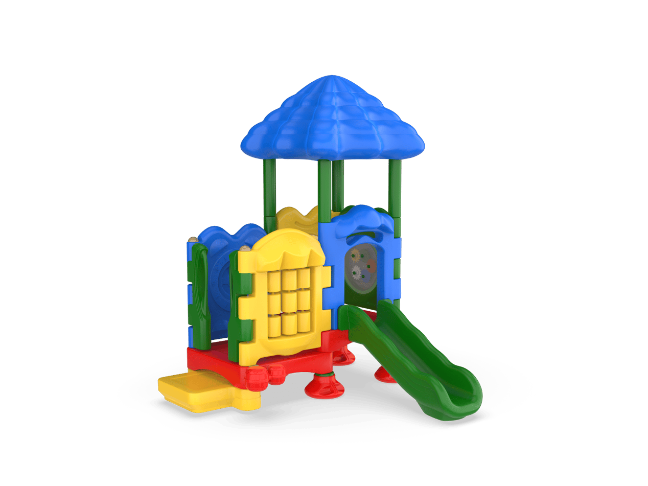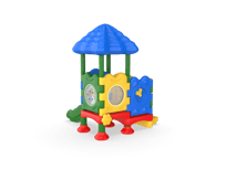 Our top-selling Discovery Center unit offers a compact design with maximum play value for smaller play spaces. This two-deck structure features a multitude of activities for the youngest 6-month old to the busiest 23-month old, while offering nature inspired detail integrated throughout the structure. Children will stay active with their friends as they engage with the interactive components. The Window Panel allows children to peek at their friends below while the Rain Wheel and Gear Panel offer learning opportunities about cause and effect as they enjoy the sounds they can make with a simple spin. The entryway of the structure also features handrails providing an easy transition to the first deck. This structure also features a roof offering shade and comfort for children during play!