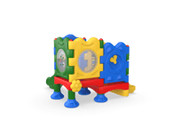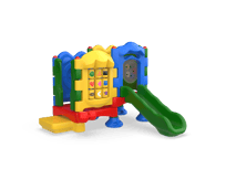Our top-selling Discovery Center unit offers maximum play value with a compact design to easily fit in a play space! This two-deck structure features a multitude of activities for the youngest 6-month old to the busiest 23-month old, while offering nature inspired detail integrated throughout the structure. Children will stay active with their friends as they engage with the interactive components. The Window Panel allows children to peek at their friends below while the Rain Wheel and Gear Panel offer learning opportunities about cause and effect as they realize the noise they can make with a simple spin. The entryway of the structure also features handrails so children can enjoy an easy transition to the first deck. This structure is also available with a roof, which provides shade and comfort for children during play!