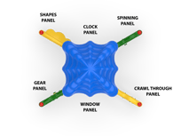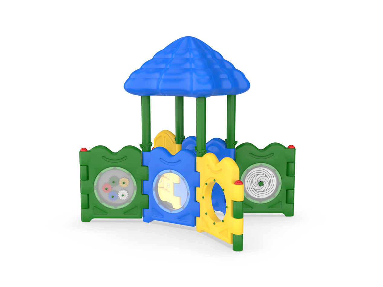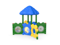 The Discovery Center Playhouse is packed with exciting activities, while also being 100% ground level making it easy to access by children of various abilities. Increased supervision and ease of access for caregivers is achieved by the open design of this play structure. Children ages 6-23 months will explore the six play panels, which were selected to encourage skill development for that age group such as fine/gross motor development and object recognition. The Crawl Through Panel offers a unique challenge as children develop gross motor abilities and coordination as they transition from one side to the other, building strength and confidence!
