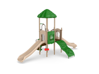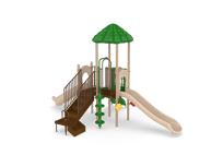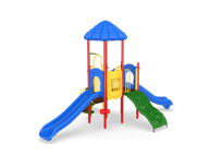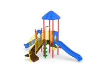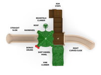 The Hawk's Nest boasts a challenging 4' Vine Climber and Beanstalk Climber, while also offering a Straight and Curved Slide. The Ship's Wheel Panel adds dramatic play opportunities while giving caregivers increased visibility to the structure. Two ground level music components ensure that children of all abilities will enjoy this structure. Finally, the roof helps keeps kids cool as they explore the Hawk's Nest. This structure meets ADA guidelines and is commercially compliant with ASTM & CSPC. The posts are 13-gauge galvanized steel tube and powder coated. The plastics are heavy-duty rotomolded & blow molded components. Critical fall height is 4’0” A ground spike surface mount is included with the structure, but an anchor bolt surface mount or in-ground mounting kit can be purchased separately. Perfect for easy-install, commercially compliant and budget-conscious solutions for daycares, churches and apartment complexes! Assembly required. Truck delivery.
