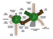 The Honeycomb Hideaway with Roof is buzzing of excitement and adventure where children can immerse themselves in a world of imaginative play and exploration. With its play attachments, the Hex Hive offers a world of possibilities for young adventurers to explore and enjoy. This vibrant play space invites everyone to climb, slide, and engage in endless fun!