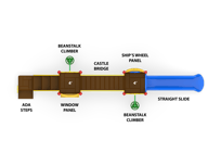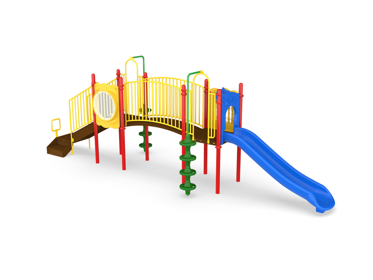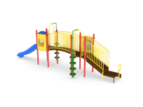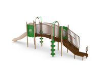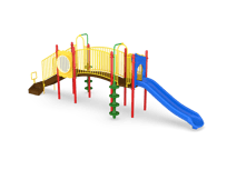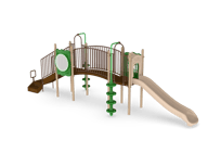 From the ADA Transfer Platform at one end, to the 4’ slide at the other end, the Lafayette offers a straight shot of action. As part of the Row Series, Lafayette was created to provide awesome play value for narrow play spaces. And, awesome it is with its Ships Wheel, Beanstalk Climbers, Castle Bridge and more!