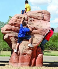 The Large Sandstone Boulder boasts a stunning height of 8 feet giving children ages 5-12 a unique and authentic climbing challenge. The ample size of this rock climber allows up to 8 children to play together as they creatively scale the boulder. Consider combining large and medium playground boulders to create an arch to add even more rock climbing and active play opportunities. The NatureROCKS sandstone boulders are artfully designed from real rock outcroppings and hand painted to look and feel like sandstone. Each playground boulder is constructed of durable, weatherproof glass fiber reinforced concrete (GFRC). All boulders also feature built-in forklift channels to easily facilitate delivery and placement.