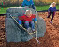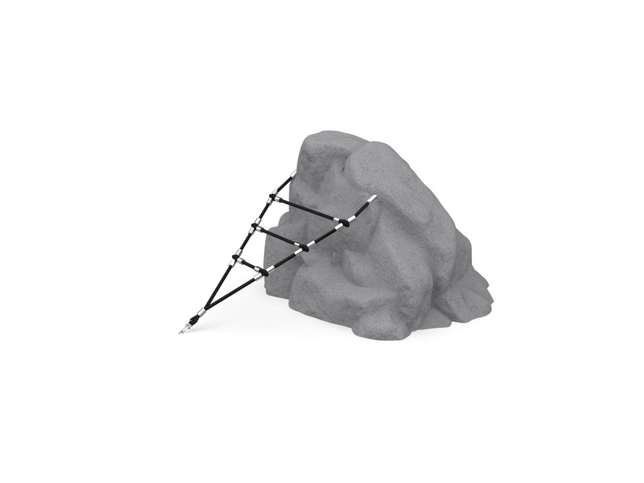 Add challenge and adventure to your play space with our nature inspired boulders linked by nets and ropes. Pike’s Peak offers an extra bouldering challenge for young climbers as they descend off the boulder down a roped ladder to ground level. Suitable for children ages 5-12, this configuration includes a Small Granite Boulder with a V Ladder Net.