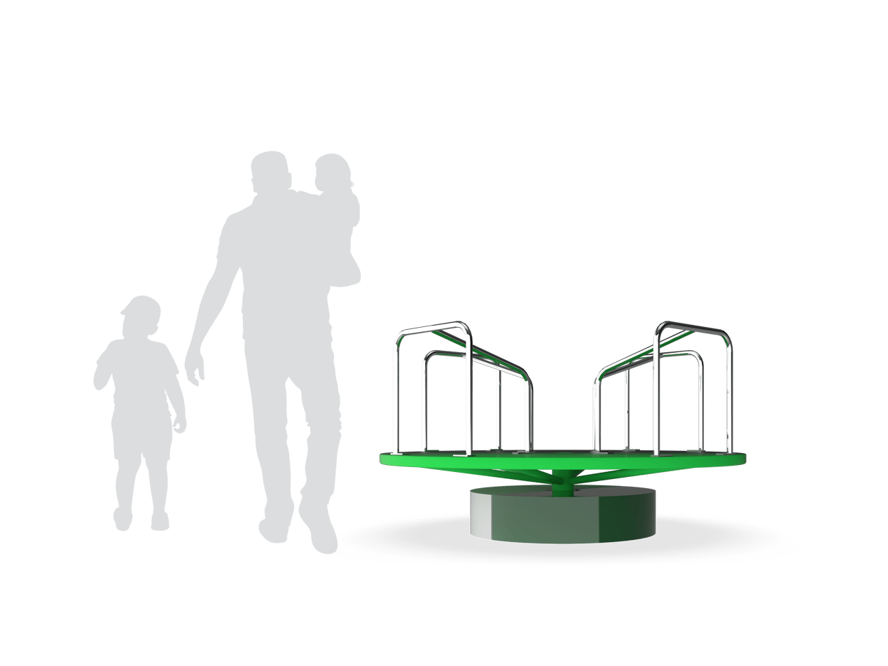 The Supersonic Spinner Mini encourages peer to peer cooperation and teamwork as children work together to rotate the spinner.