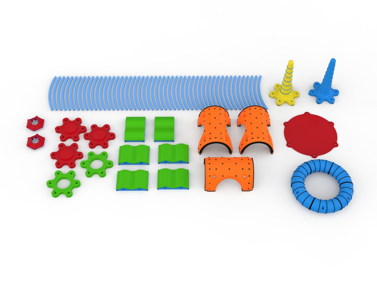 SnugPlay’s unique, easy to maintain play components provide open ended, interactive, and inclusive play opportunities both indoors and outside. The Advanced system offers a substantial quantity of the Snug Play elements, while taking up less space with a smaller Loop Ring. This system does not include the Mound.
