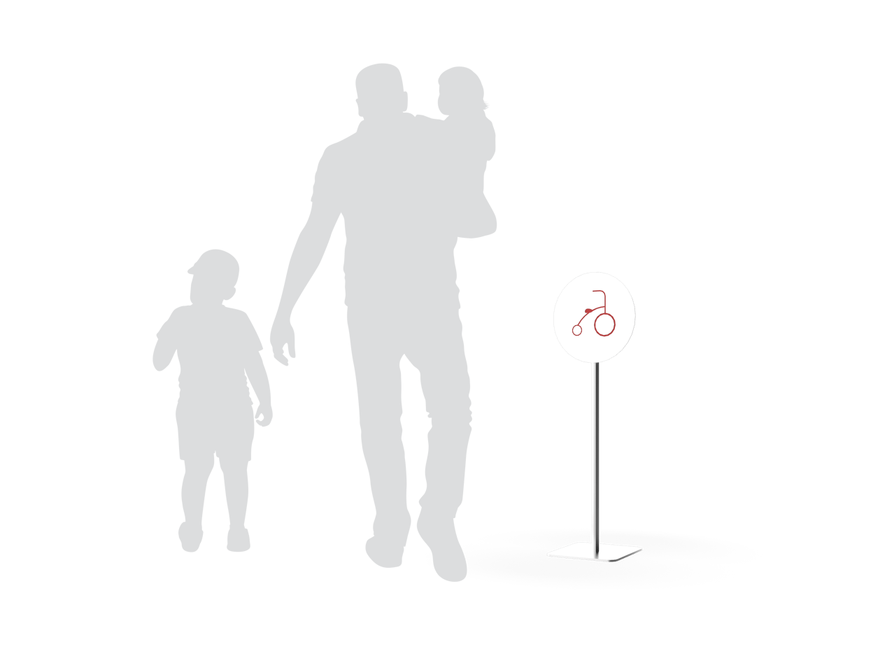 Signs include a moveable base and can be rearranged throughout the pathway or brought indoors. Trike path must be placed outside of use zone. Trike Path sign height is 37-1/2.