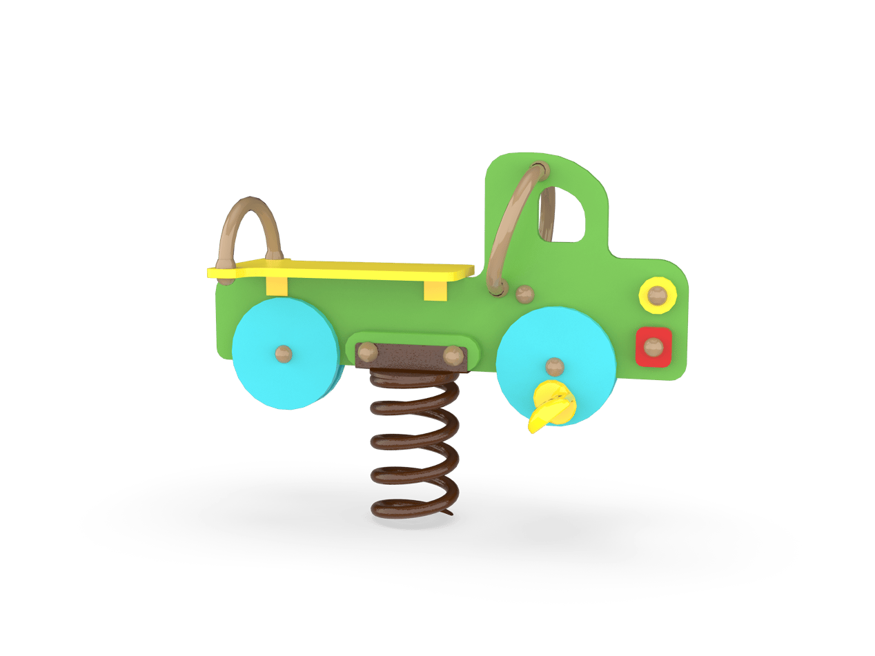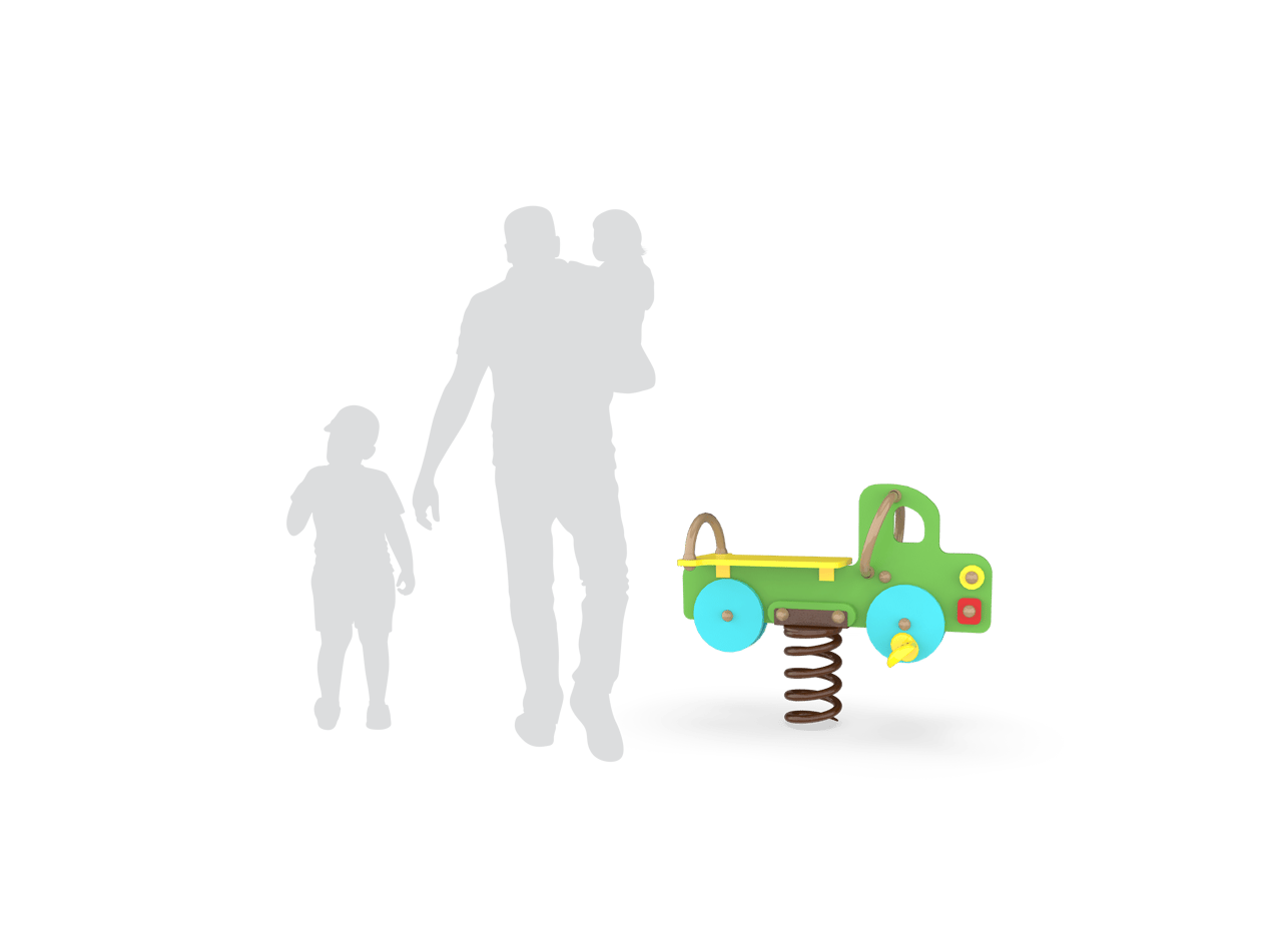The Truck spring rider is an exciting way for children to engage in imaginative play. Comprised of an HDPE body and a heavy-duty steel spring, each rider can be mounted with the included anchor bolts. Use zone for each spring rider is 15x13, and proper safety surfacing is required. Mounts with included concrete anchor bolts. Inground mounting kit also available #02-07-0187(sold separately)